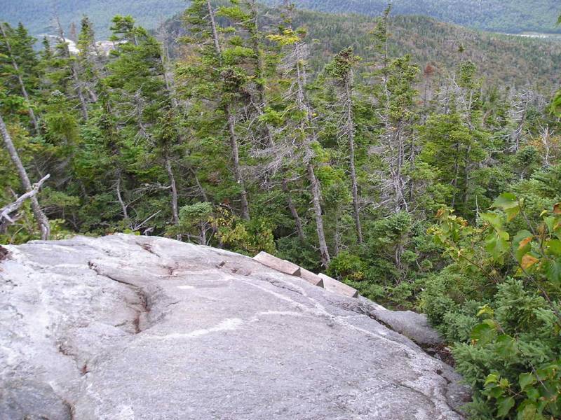 Looking down at some rock steps.