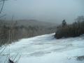 The trail runs parallel to the ski area for quite a while. At a couple of spots you can walk out to the slope. This run is closed due to all the ice. It would be a great place to practice walking in crampons.